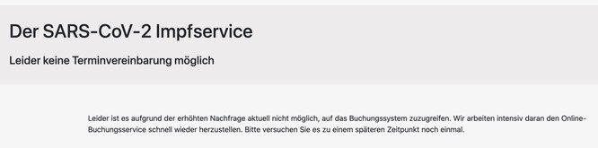 In unserer Gemeinde werden Terminbuchunngsoptionen für über 60jährigen für satte 3 Tage online geöffnet. Es kommt - mit Voransage - zu den gleichen chaotischen Szenen im Portal wie schon bei der Terminplanung der über 80jährigen. Wie kann das sein?
