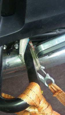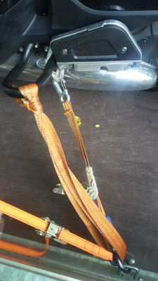 Somit ist mein erstes Credo: keine Zurrgurte mit Haken sondern nur mit Karabiner.  Da kann passieren was will, die fallen nicht aus der Zurröse.
