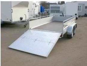 Ich kannte vorab die klassischen Motorradhänger mit ihren 2 Schienen und der Rampe. Diese fand ich sehr unvorteilhaft, wg der schmalen/glatten Rampe und viel „Luft“ neben den Ladeschienen. Ein 350kg-Motorrad neben sich dort hoch zu dirigieren ist alles andere als schön und sicher. Allerdings sind sie relativ preiswert. Wenn aber erst einmal eine Beladung „daneben“ gegangen ist, relativiert sich das „preiswert“. Außerdem kann so ein Hänger für nix anderes gebraucht werden. (Eine Abart dieser Hänger sind die „Klapphänger“ für ein Bike. Da ist die eine Schiene so gelagert, dass sie zum Beladen auf dem Boden liegt und dann in die Transporthöhe gepumpt werden muss. Leer kann so ein Ding geklappt an die Garagenwand gelehnt werden. Platzsparend und einfach zu beladen. Aber ein Dickschiff möchte ich so nicht transportieren.