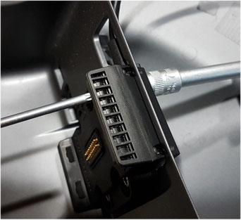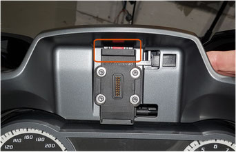 Jetzt kann man das ganze Verkleidungsteil hochnehmen. Es macht die Sache einfacher, wenn das Navi jetzt abgestöpselt wird. Das sind lediglich zwei Steckverbindungen.