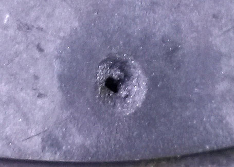 So wie hier sieht es also aus, das Loch. In diesem Fall ist schon der 1. Arbeitsgang, das Aufbohren, erledigt.