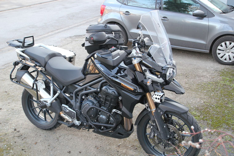 Nach einer Probefahrt mit einer Triumph Tiger Explorer kam die Gewissheit, dass es im Bereich Schaltung und Kardan auch anders geht. Schaltung und Getriebe muss nicht zwangsweise eine Klackbox sein, ein Kardan muss nicht jeden Lastwechsel kommentieren, auch langsam fahren kann erträglich sein. Dazu ein an sich seidenweich laufender Motor mit (für mich) ausreichend Dampf. Somit wurde ich Tigerdompteur.