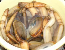 Die Zubereitung der Muscheln ist denkbar einfach: sie werden gekocht. Um keine toten Tiere mit zu verwenden werden sie vor dem Kochen kurz an der seitlichen Muskulatur berührt. Dabei ziehen sie sich wieder etwas in Gehäuse zurück und ein Wasserstrahl wird abgegeben. Das ist das beste Zeichen, dass sie noch leben. Wenn das Wasser sprudelnd kocht, werden sie 3 – 5 Minuten ins Wasser gelegt. Anschließend werden sie geöffnet. Zur Verwendung und somit zum Verzehr kommt nur der Schalenmuskel und der Schlauchmuskel.