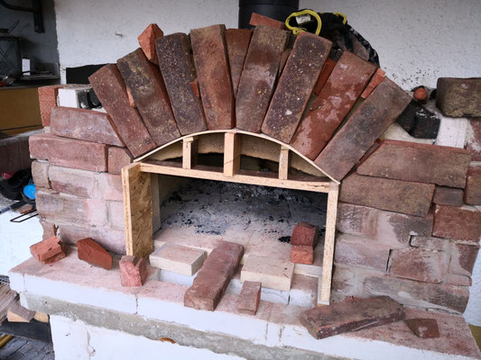 passgenauen Übergang von Gewölbe und Vorderseite. Nur auf einem Bild ist zu sehen, dass der Bogen auf den Schamottesteinen steht. Dann kommt man der Sache auch näher. Alle anderen Bilder sind an