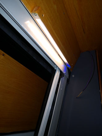 In den Hängeschränken sind Kontaktschalter eingebaut, die bei Öffnen das Licht anmachen. Sie funktionieren auch als Wechselschalter, so dass man durch die Betätigung des Schlters auch einen Strom unterbrechen könnte.